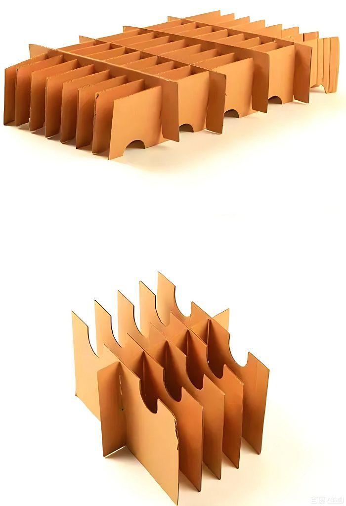 Kard tal-partizzjoni vojta għall-kaxxa hija magħmula minn kartun korrugat kompost b'ħafna -saffi bi ħxuna ta '2-4mm, li joffri ebusija għolja u reżistenza għall-ilbies. It-truf huma rinfurzati biex jipprevjenu l-ħsara, li jistgħu jisseparaw b'mod effettiv tipi differenti ta 'prodotti fil-kartuna, u jipprevjenu t-taħlit ta' togħma jew grif.